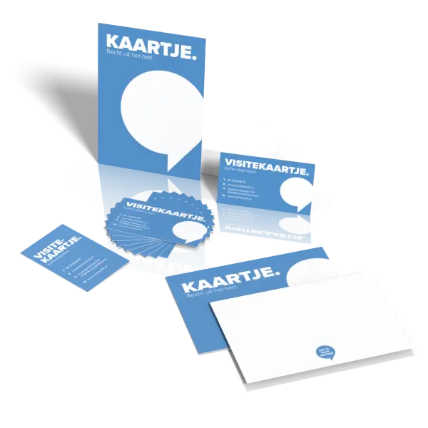 Opsomming van de items of begeleidende tekst waar het pakket voor gebruikt kan worden. In dit geval verschillende soorten klein drukwerk.